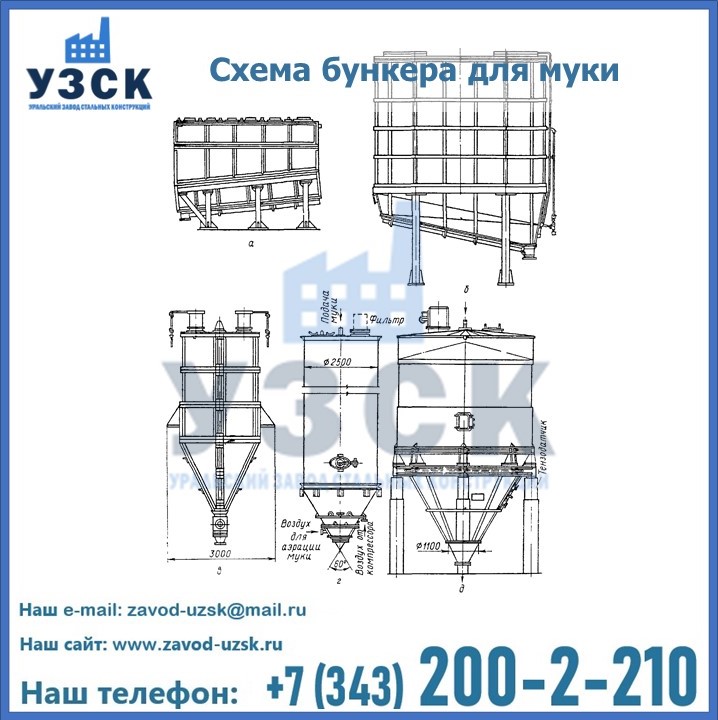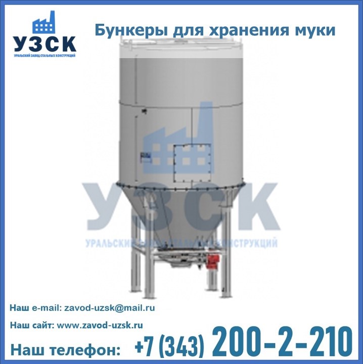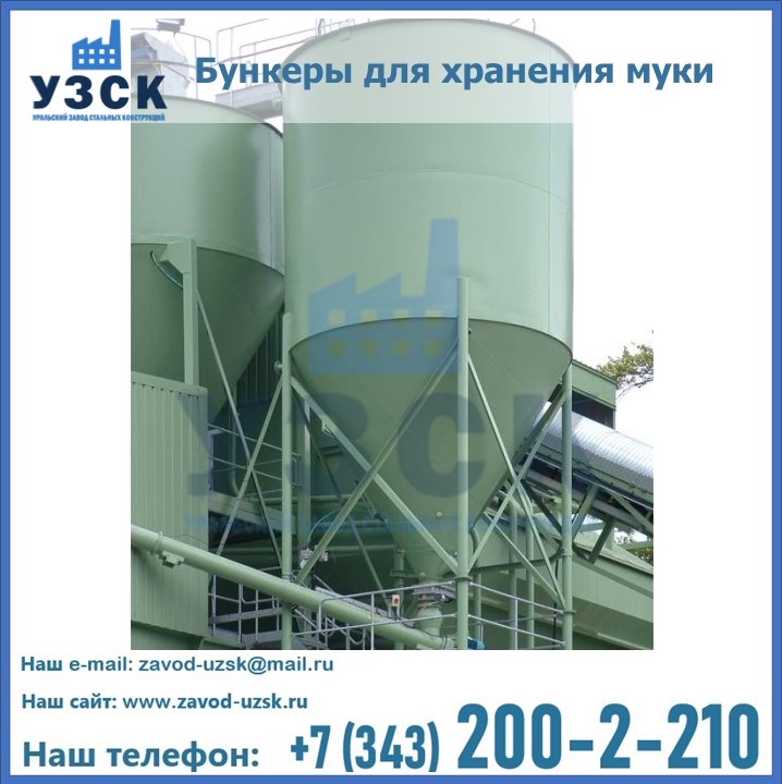 Завод «УЗСК» в Реутове проектирует, производит и поставляет целевое оборудование, в том числе, бункеры для хранения муки и прочих сыпучих материалов.