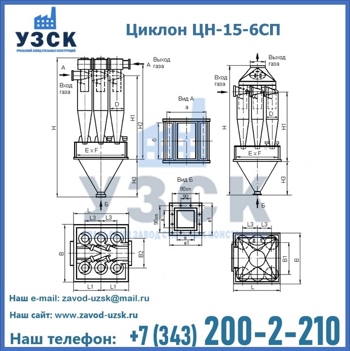 Завод «УЗСК» в Реутове предлагает большой выбор циклонов ЦН-15-900×6СП и прочих устройств, полностью укомплектованных и готовых к эксплуатации. Мы гарантируем соответствие оборудования всем требованиям ГОСТ и ТУ, износостойкость и высокую производительность предлагаемого оборудования. Уральский Завод Стальных Конструкций изготавливает и продает надежное, эффективное и производительное оборудование, имеющее длительную гарантию и большой эксплуатационный ресурс. Если требуется изготовить циклон нестандартных размеров, то такой вариант выполнения заказа тоже предусмотрен, так как предприятие имеет собственные производственные площади и надежных поставщиков. На все поставляемое или производимое оборудование имеются чертежи и прочая техническая документация. Заказать и купить циклоны или прочее оборудование высокого качества и по доступной цене можно через наш сайт или по указанному в разделе «Контакты» телефону.